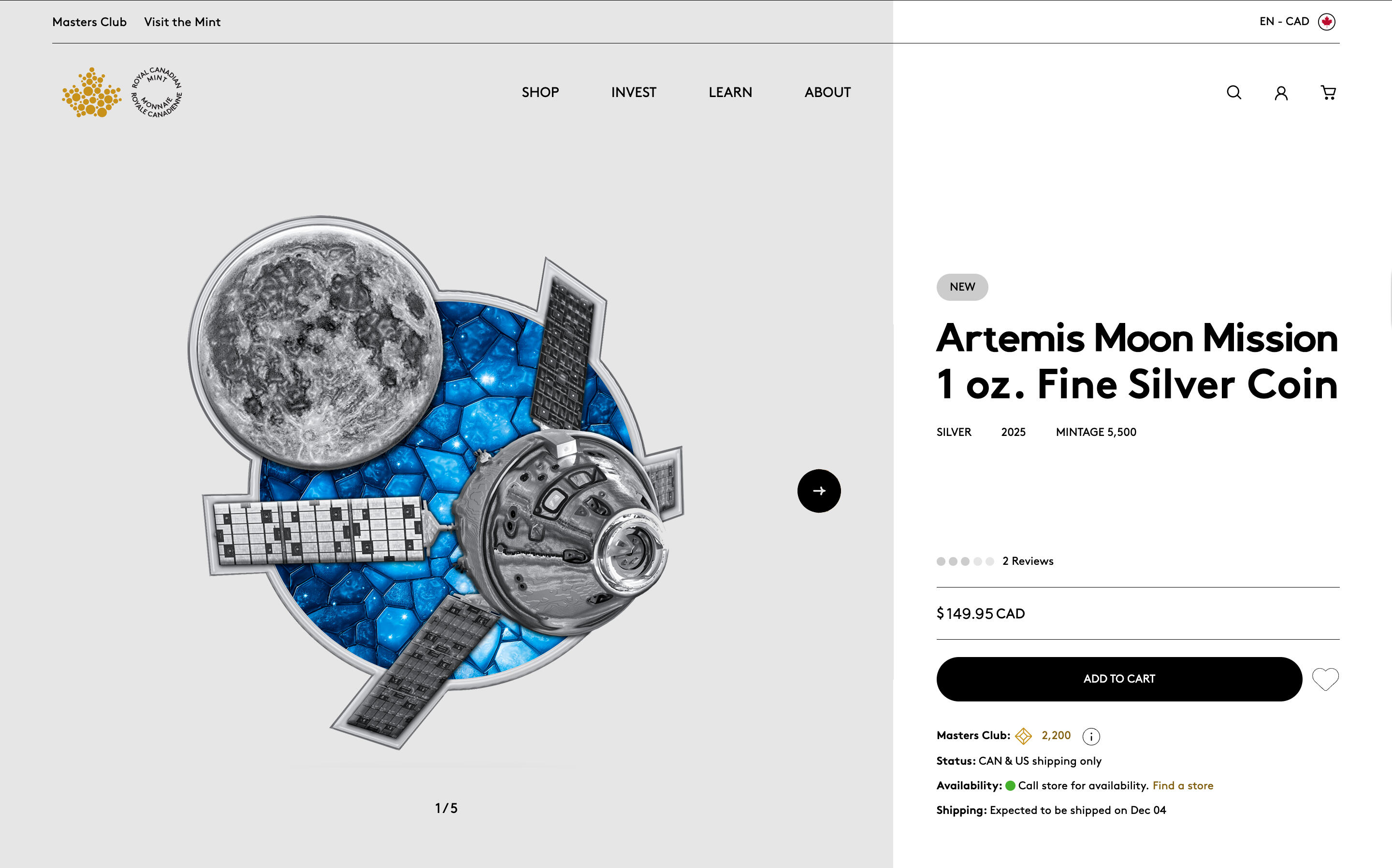 Briefed by The Royal Canadian Mint's advertising and PR team, we were tasked with creating a new design and campaign for the launch of the upcoming Artemis Moon mission coin. As head of design, my task was to create a coin design as well as mock-ups for the different campaign tactics.